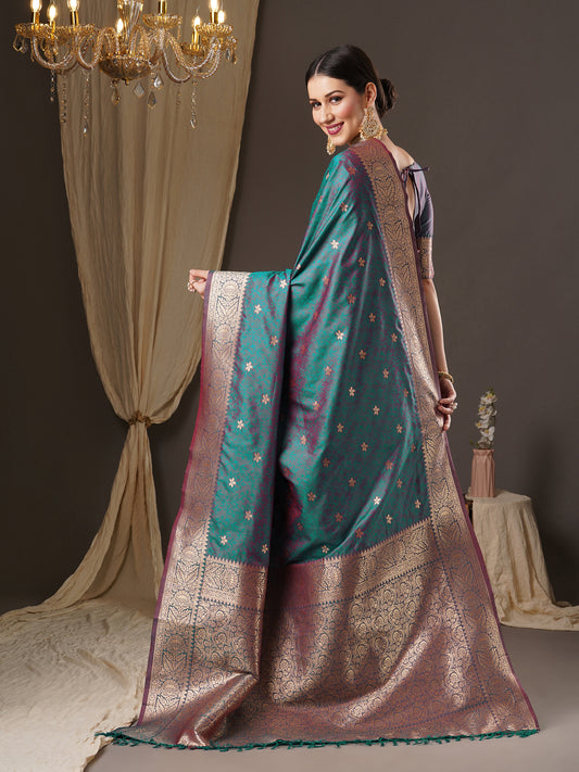 Women's Silk Blend Green Woven Design Designer Saree With Blouse Piece