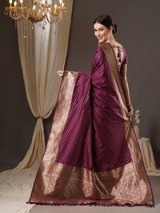 Women's Silk Blend Magenta Woven Design Celebrity Saree With Blouse Piece