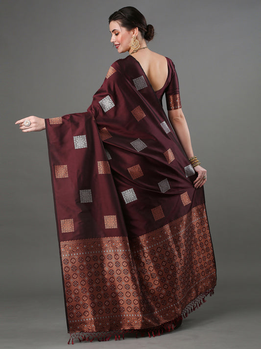 Women's Silk Blend Brown Woven Design Designer Saree With Blouse Piece