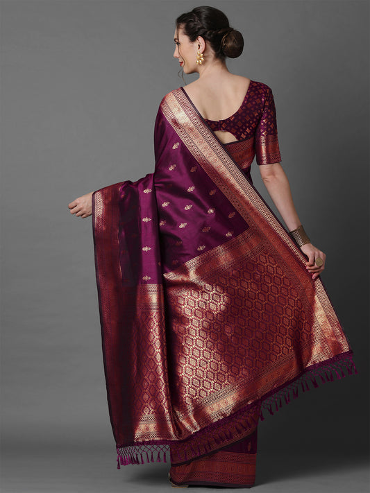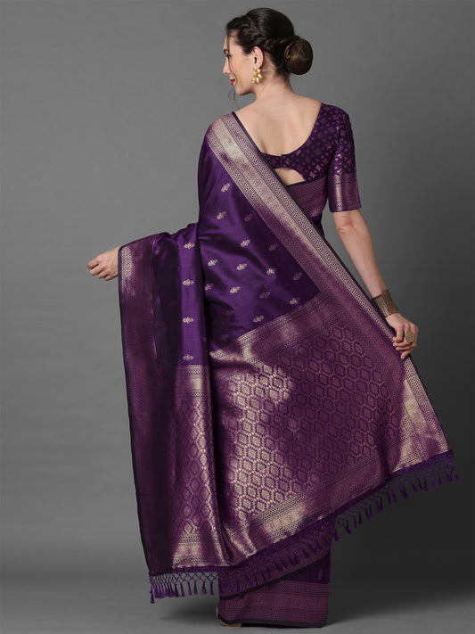 Women's Silk Blend Purple Woven Design Designer Saree With Blouse Piece