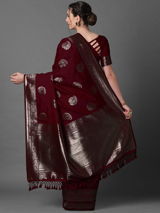 Women's Silk Blend Magenta Woven Design Designer Saree With Blouse Piece
