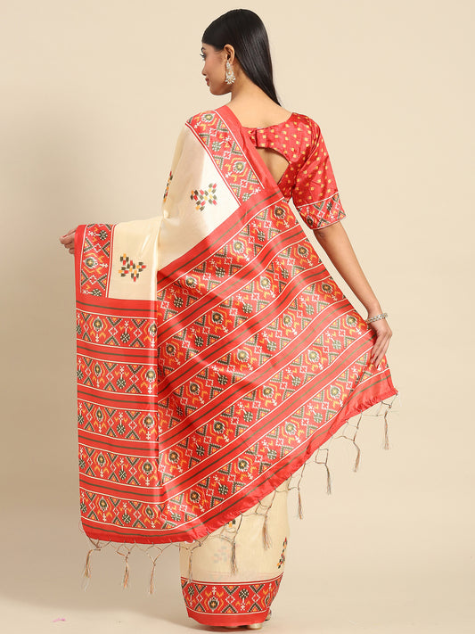 Women's Silk Blend Off White Digital Print Celebrity Saree With Blouse Piece