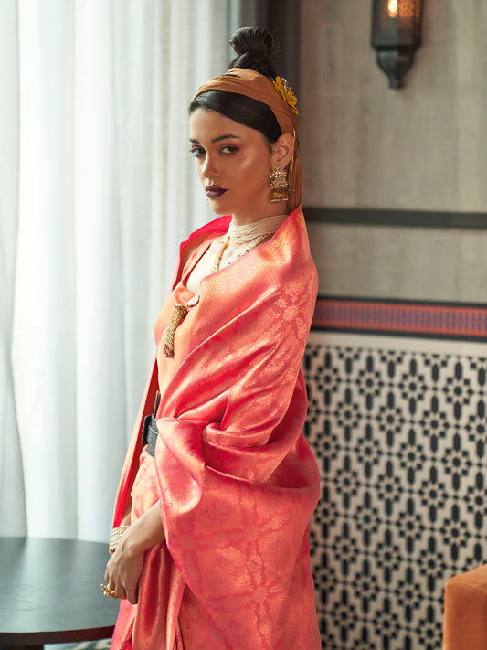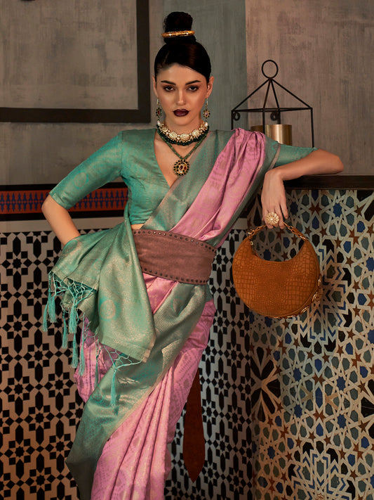 Women's Silk Blend Pink Woven Design Designer Saree With Blouse Piece