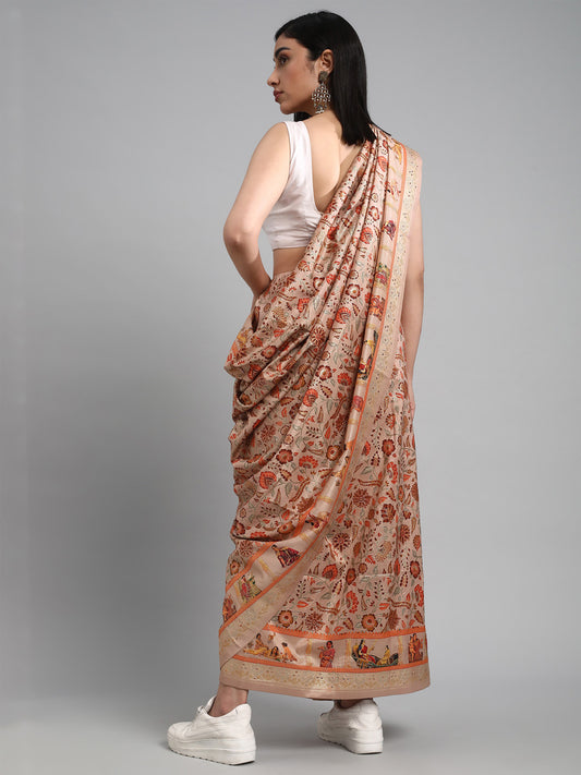 Women's Silk Blend Brown Woven Design Celebrity Saree With Blouse Piece