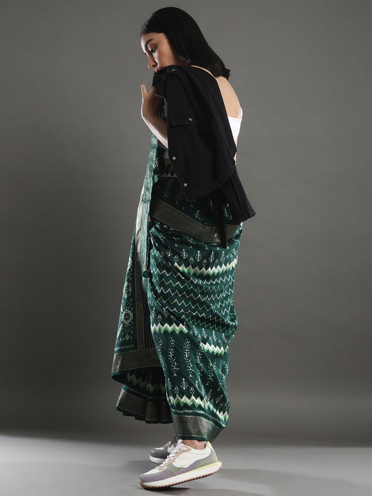 Women's Silk Blend Dark Green Woven Design Designer Saree With Blouse Piece