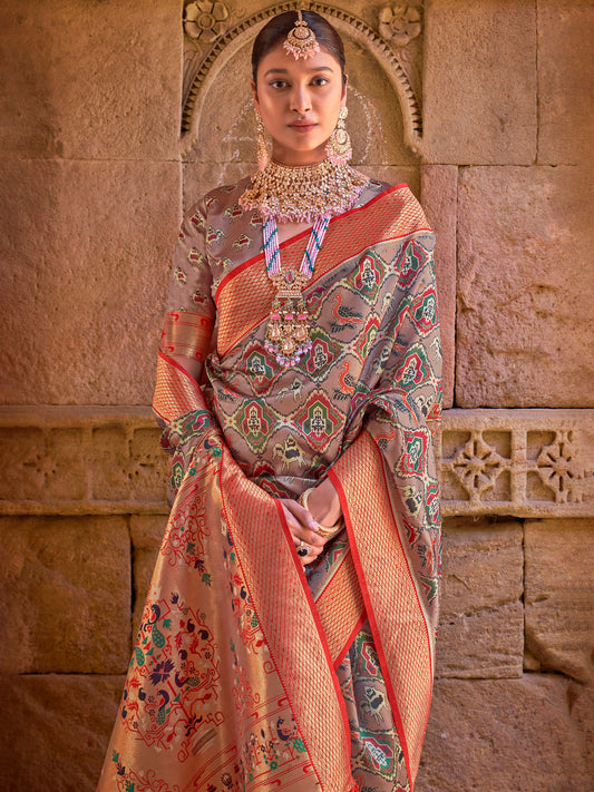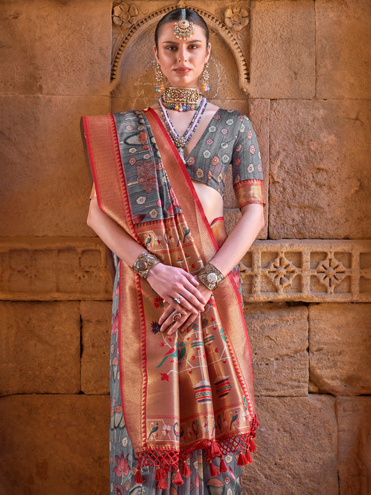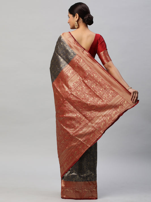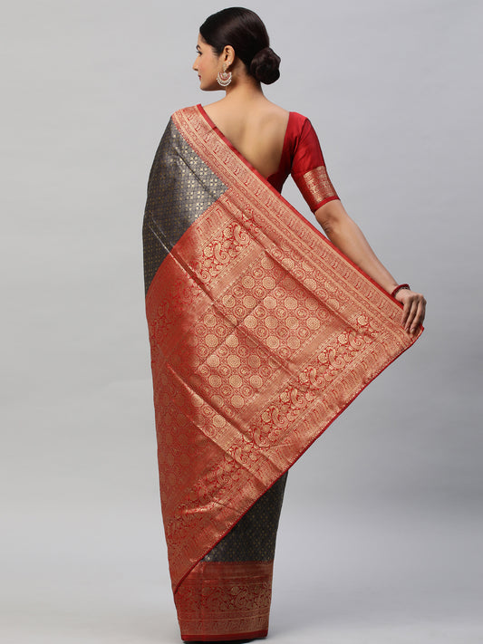 Women's Silk Blend Grey Woven Design Designer Saree With Blouse Piece