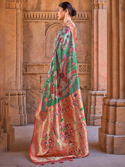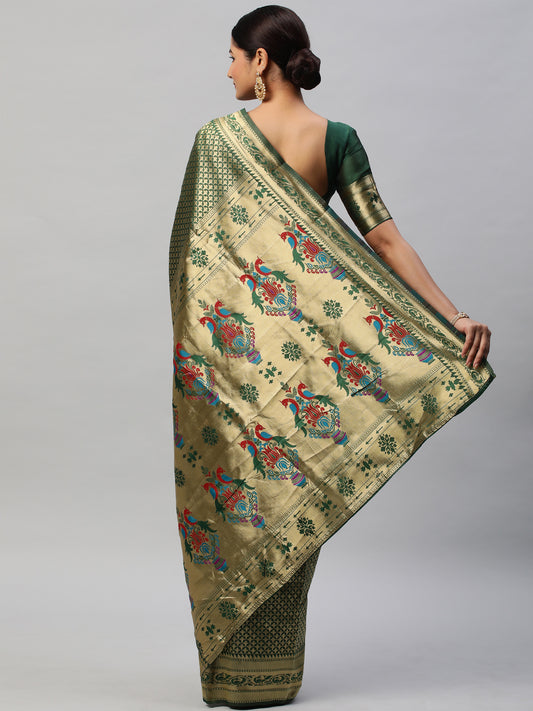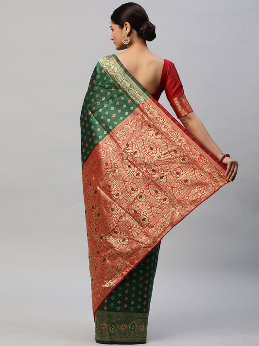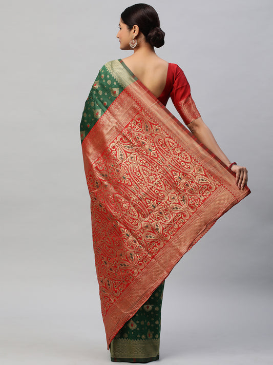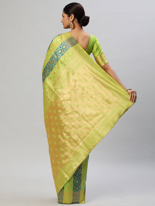 Women's Silk Blend Green Woven Design Designer Saree With Blouse Piece