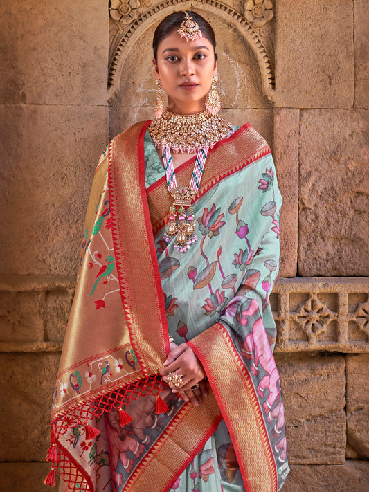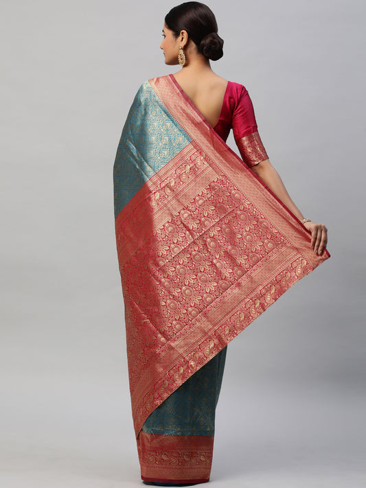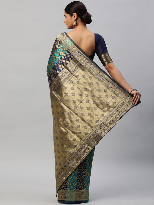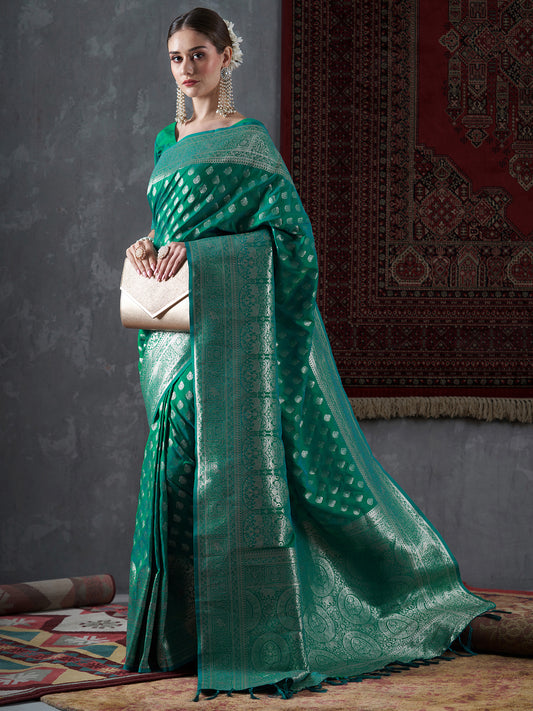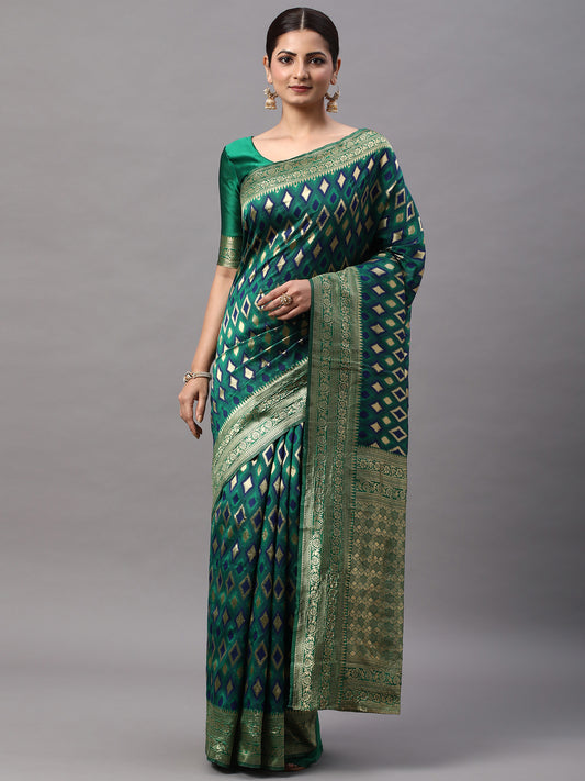 Women's Silk Blend Teal green Woven Design Designer Saree With Blouse Piece