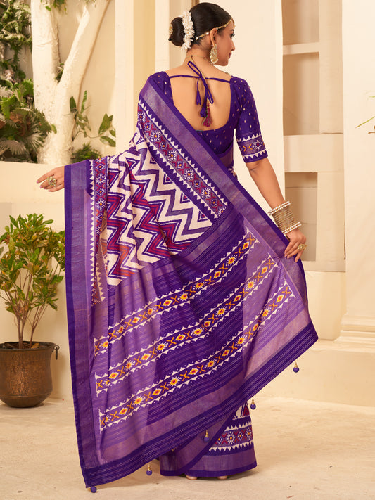 Women's Silk Blend Purple Printed Designer Saree With Blouse Piece