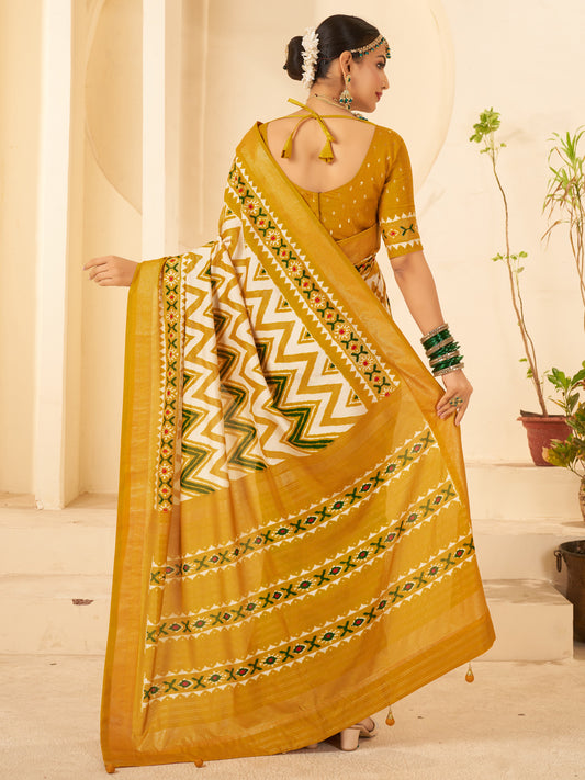 Women's Silk Blend Mustard Printed Designer Saree With Blouse Piece