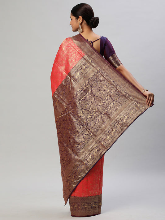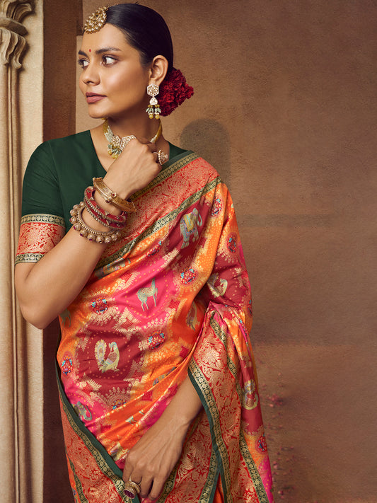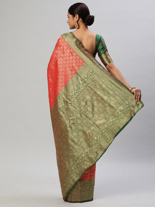 Women's Silk Blend Orange Woven Design Designer Saree With Blouse Piece