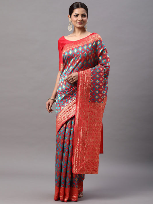 Women's Silk Blend Red Woven Design Designer Saree With Blouse Piece