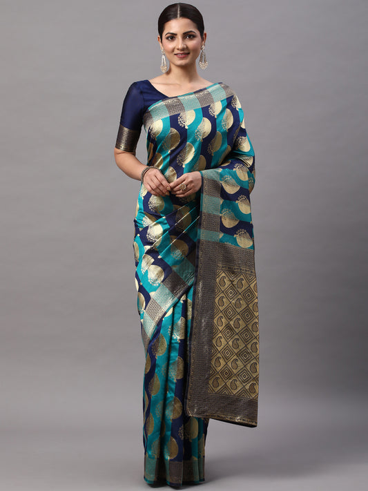 Women's Silk Blend Turquoise Woven Design Designer Saree With Blouse Piece