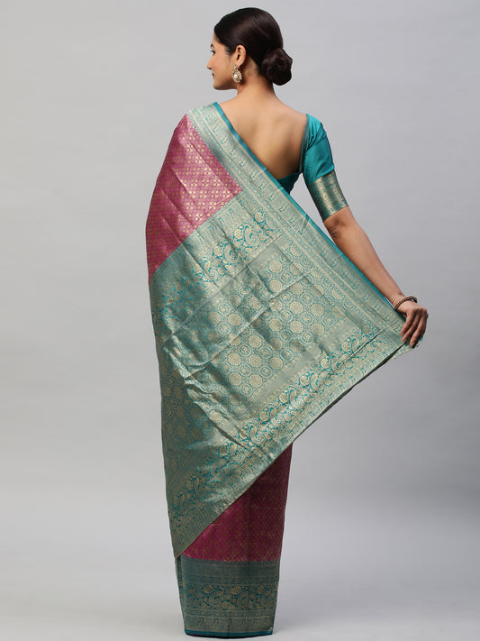 Women's Silk Blend Magenta Woven Design Designer Saree With Blouse Piece