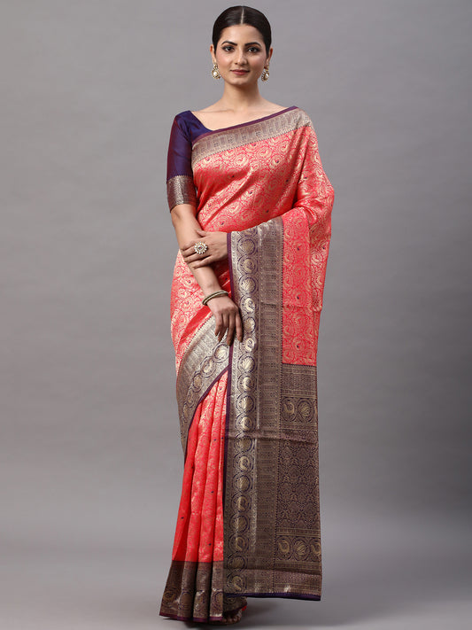 Women's Silk Blend Pink Woven Design Designer Saree With Blouse Piece