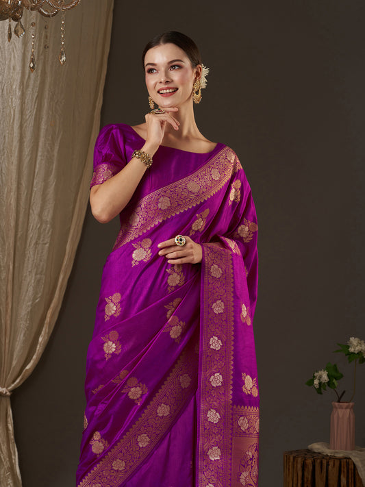 Women's Silk Blend Purple Woven Design Designer Saree With Blouse Piece