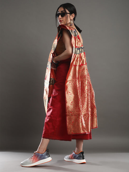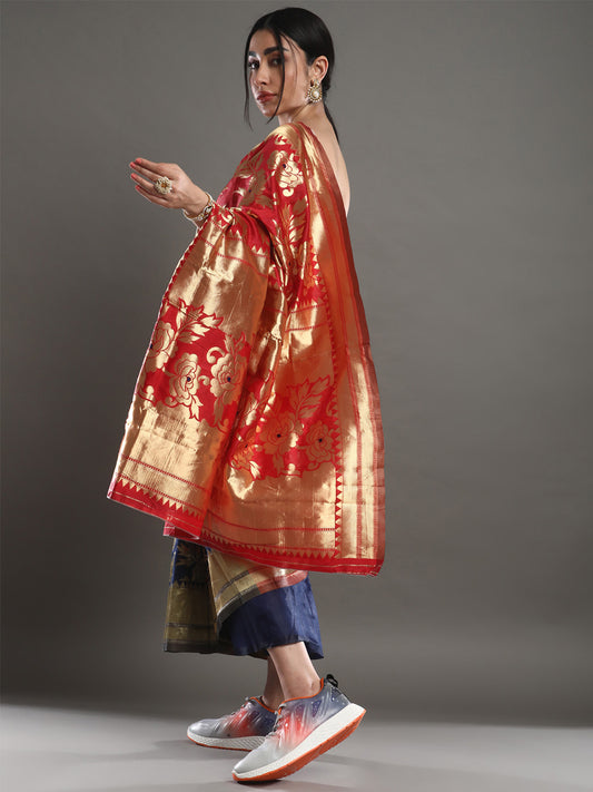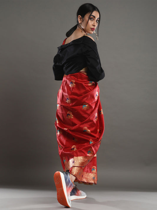 Women's Silk Blend Red Woven Design Designer Saree With Blouse Piece