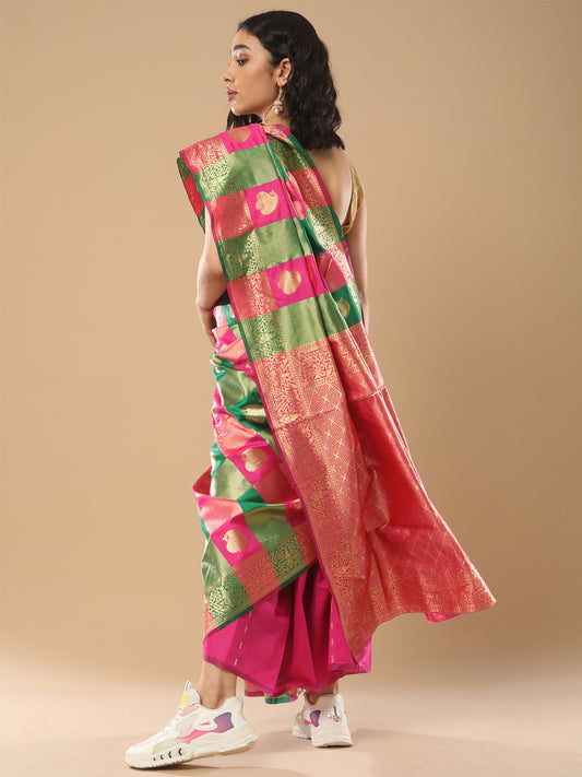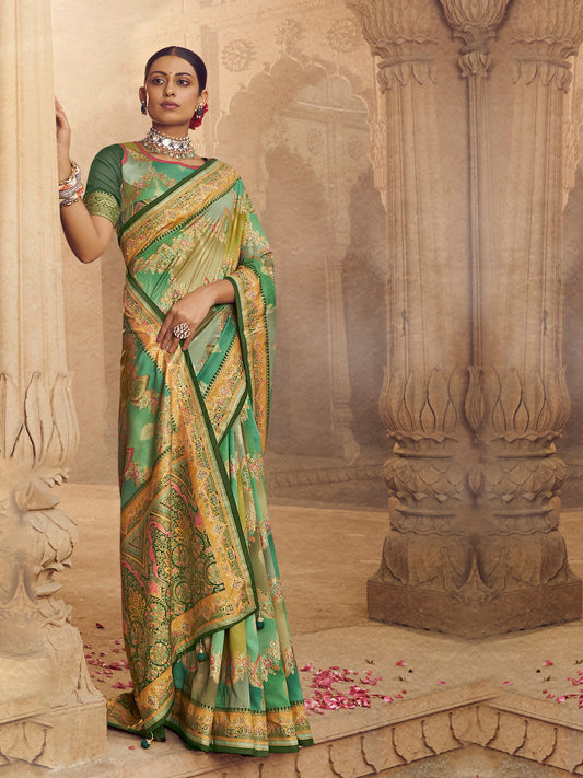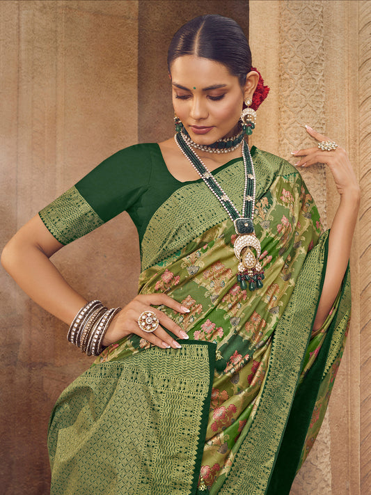 Women's Silk Blend Green Woven Design Designer Saree With Blouse Piece