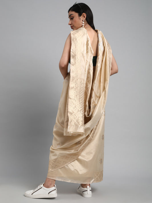Women's Silk Blend cream Woven Design Designer Saree With Blouse Piece