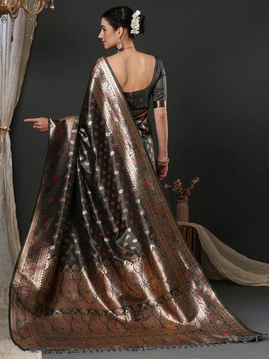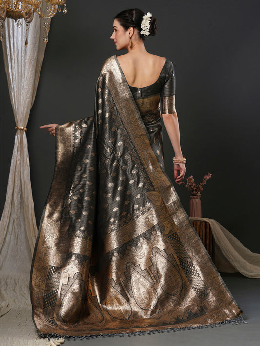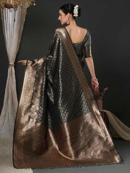 Women's Silk Blend Grey Woven Design Designer Saree With Blouse Piece