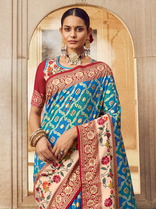 Women's Silk Blend Teal blue Woven Design Designer Saree With Blouse Piece