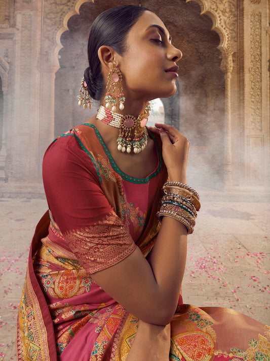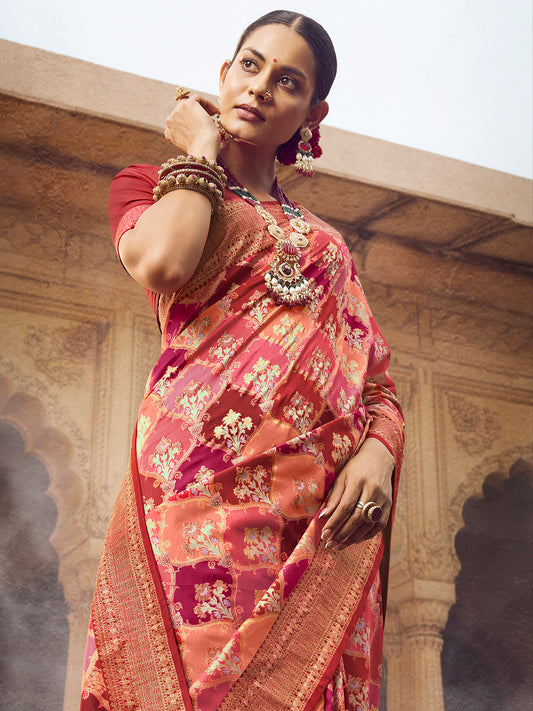 Women's Silk Blend Pink Woven Design Designer Saree With Blouse Piece