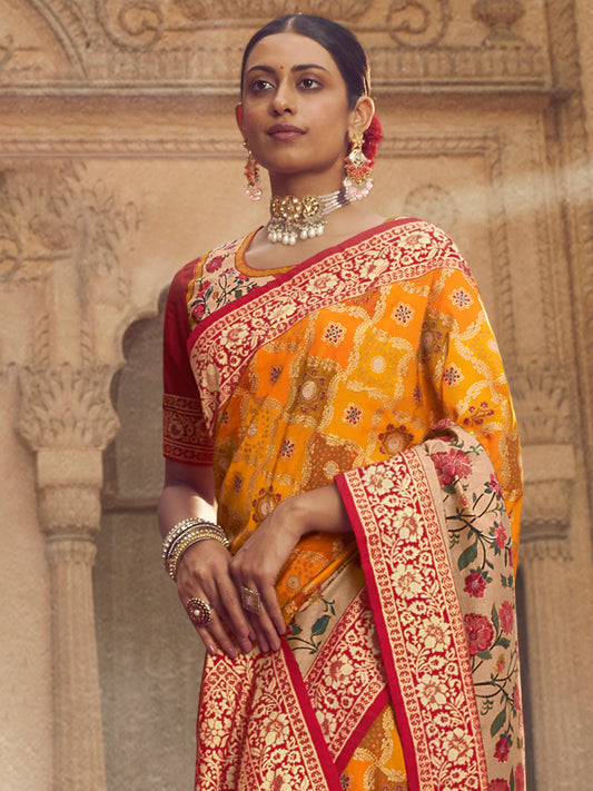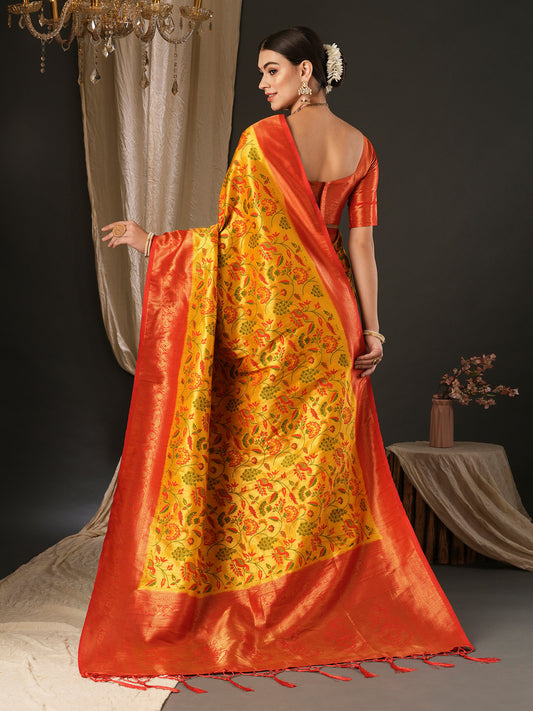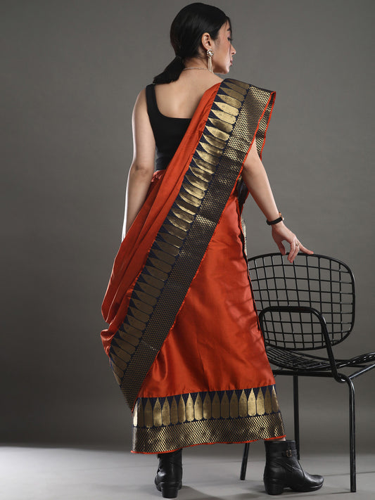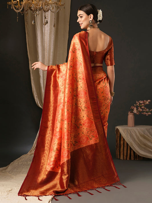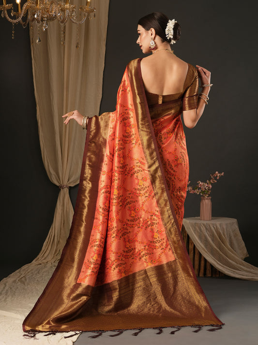 Women's Silk Blend Orange Woven Design Designer Saree With Blouse Piece