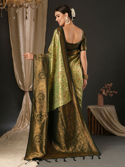 Women's Silk Blend Olive Woven Design Designer Saree With Blouse Piece