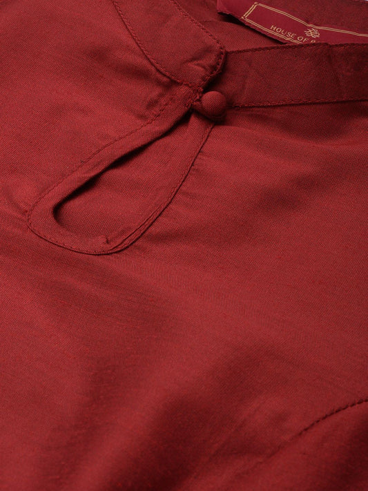 Dhiyona PD Women Ethnic Motif Embroidered Mandarin Collar Kurta With Palazzos & Slip