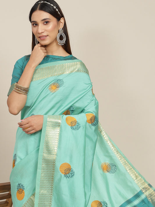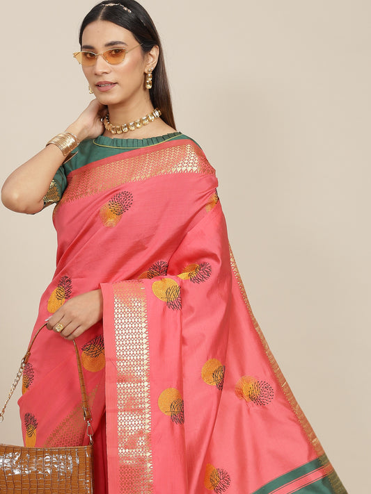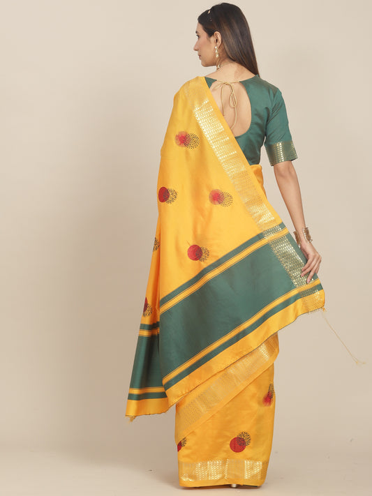 Arriva Fab Women's Elegant Soft Cotton Silk Saree with Zari Weaving & Contrast Pallu With Blouse ( KVD1855 )