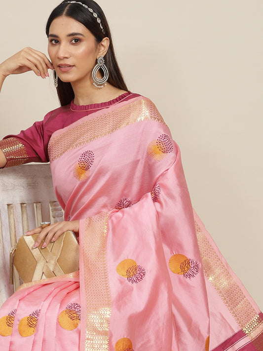 Arriva Fab Women's Elegant Soft Cotton Silk Saree with Zari Weaving & Contrast Pallu With Blouse ( KVD1853 )