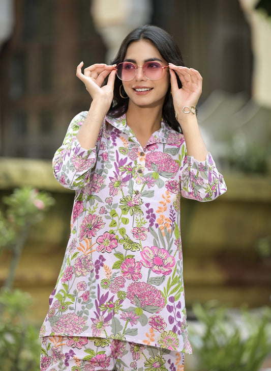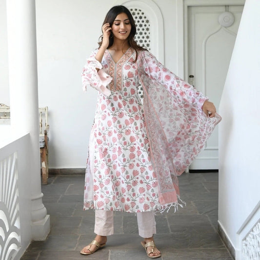 Women White Floral Print Pure Cotton Kurta And Pant Set