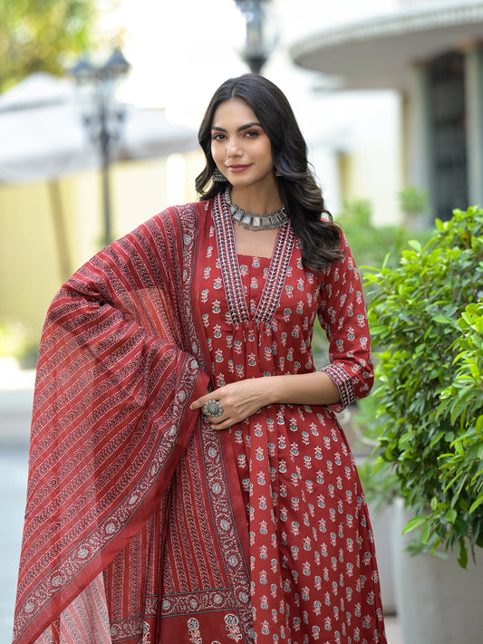 Buy 2 Get 1 FreeVendor:Dhiyona ALWomen Maroon Anarkali Kurta And Pant Set With Dupatta