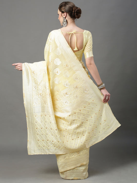 Women's Cotton Silk Yellow Woven Design Woven saree With Blouse Piece