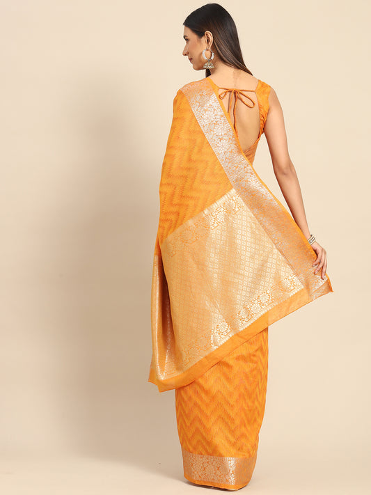 Women's Cotton Blend Mustard Woven Design Designer Saree With Blouse Piece