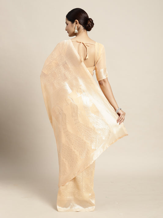 Women's Cotton Silk Peach Woven Design Woven saree With Blouse Piece