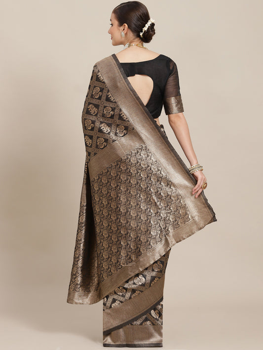 Women's Cotton Blend Black Woven Design Designer Saree With Blouse Piece