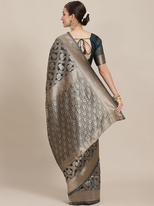 Women's Silk Blend Grey Woven Design Handloom Saree With Blouse Piece
