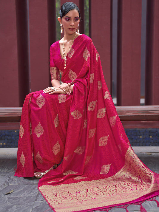 Women's Silk Blend Magenta Woven Design Celebrity Saree With Blouse Piece