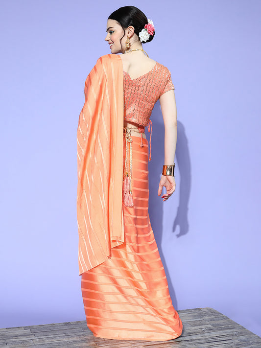 Women's Satin Orange Solid Belted Sarees With Blouse Piece