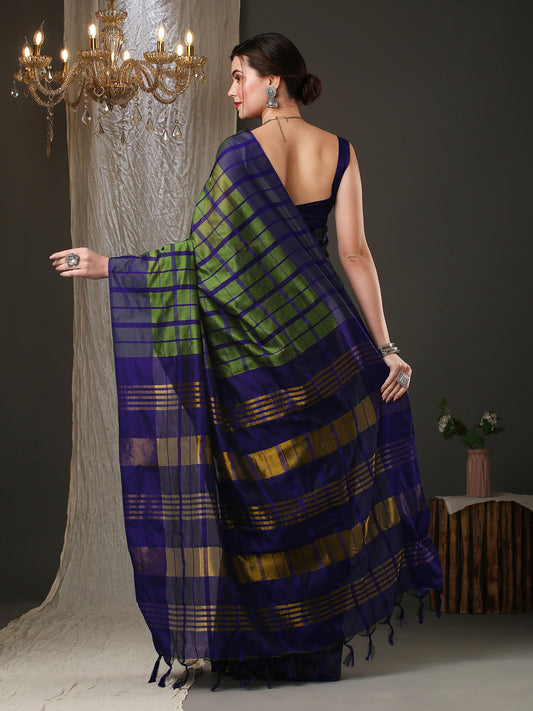 Women's Silk Blend Green Woven Design Designer Saree With Blouse Piece