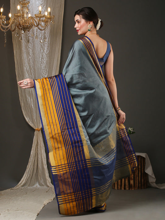 Women's Aura Silk Grey Woven Design Designer Saree With Blouse Piece