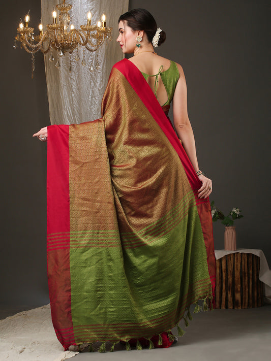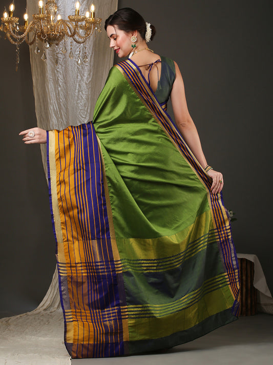 Women's Aura Silk Green Woven Design Designer Saree With Blouse Piece