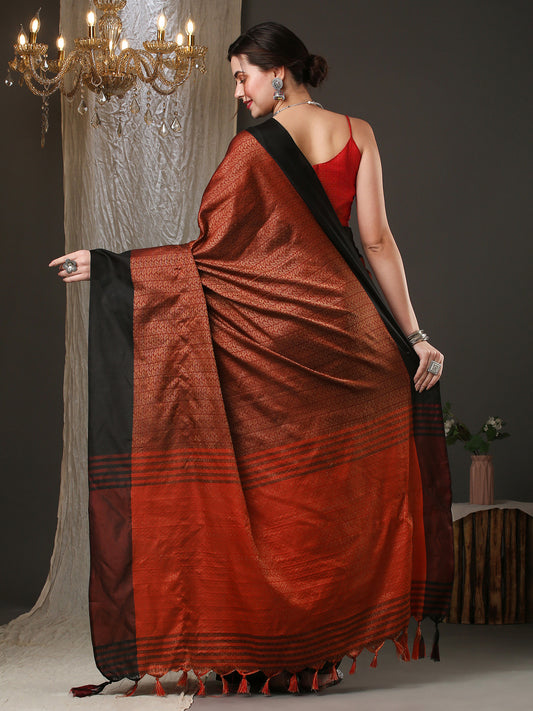 Women's Silk Blend Brown Woven Design Designer Saree With Blouse Piece