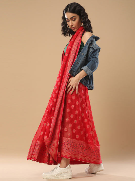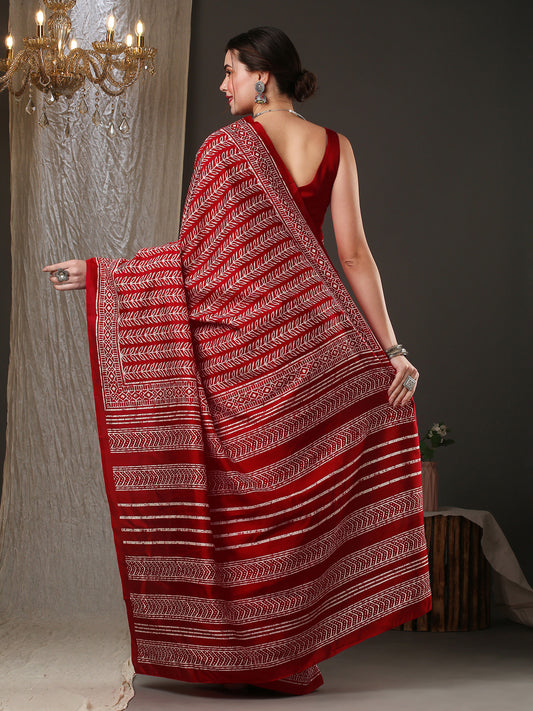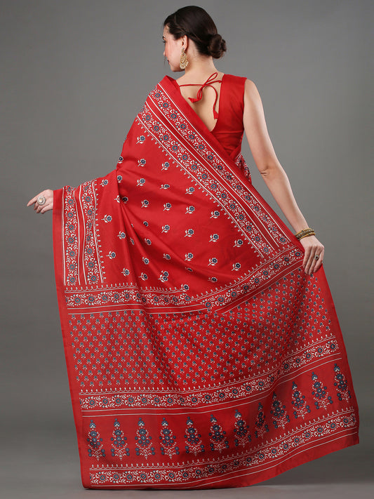 Women's Bhagalpuri Silk Red Printed Designer Saree With Blouse Piece