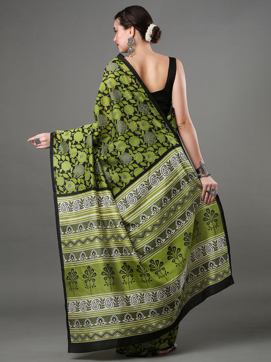 Women's Bhagalpuri Silk Green Printed Designer Saree With Blouse Piece