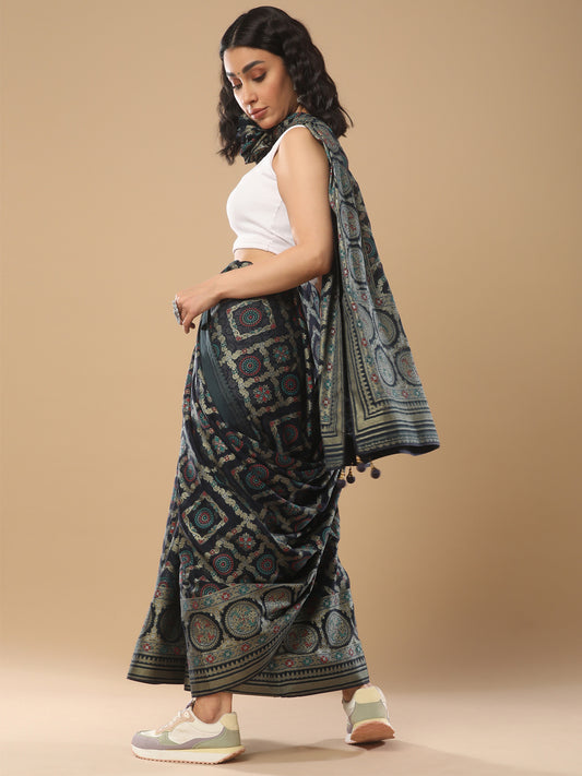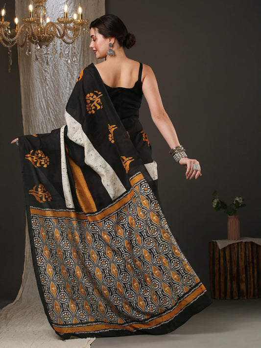 Women's Bhagalpuri Silk Black Printed Designer Saree With Blouse Piece