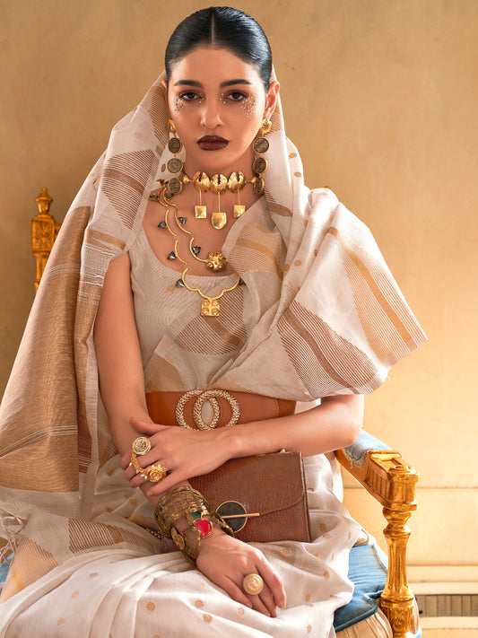 Women's Tissue Cream Woven Design Designer Saree With Blouse Piece