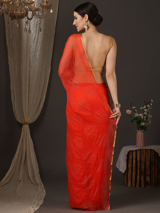 Women's Chiffon Pink Embellished Designer Saree With Blouse Piece