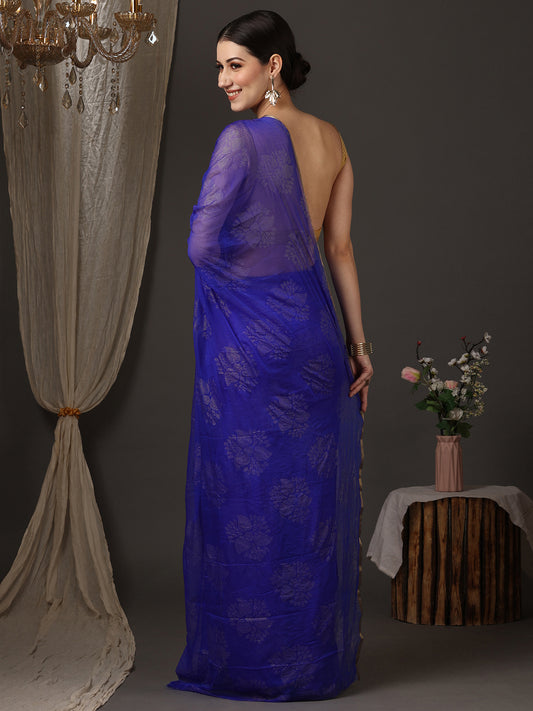 Women's Chiffon Blue Embellished Designer Saree With Blouse Piece